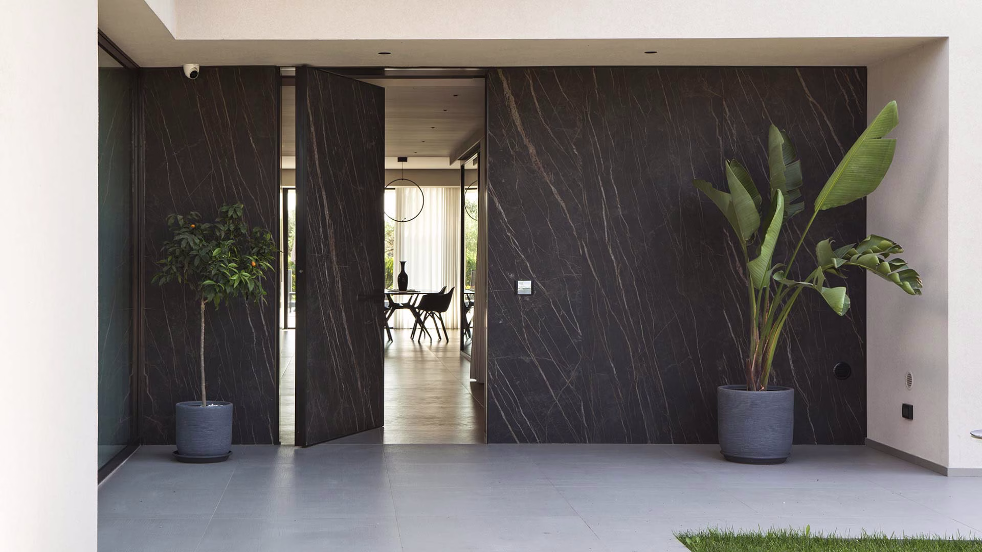 The spectacular elegance of doors amplifies the luxury feel. Modular vertical and horizontal combinations of used materials enable additional customization. A large choice of finishes includes wood, glass, Laminam, stainless steel, aluminum, and other materials, with the option of a hidden frame and different handles, to complete the flawless integration of these doors into walls. Ideal for large openings, doors are the epitome of refined style.