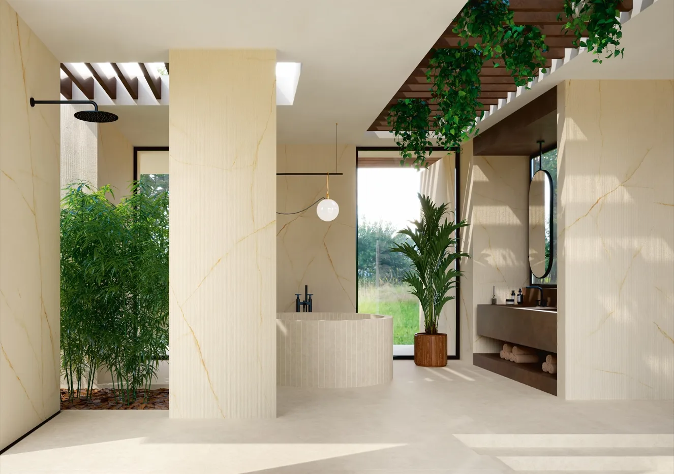 Porculanske Laminam ploče u kupaonicu donose estetsko savršenstvo i performanse koji će izdržati test vremena. Otpornost na vlagu, kemikalije i abraziju – da nabrojimo samo neke prednosti – čini Laminam idealnim za umivaonike i oblaganje namještaja u kupaonici, uključujući vrata.